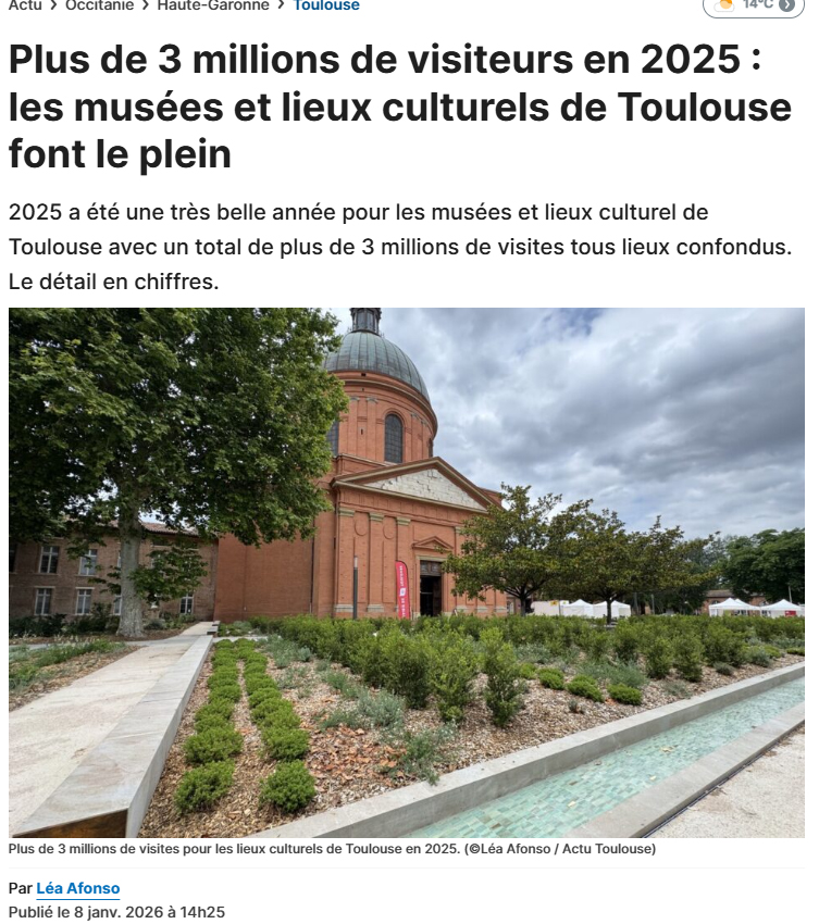 « Plusieurs établissements enregistrent de très fortes fréquentations. Le musée des Arts Précieux Paul-Dupuy a accueilli 43 900 visiteurs, soit le double de l’année précédente, grâce au succès de ses expositions (Chine, À toute vitesse, Henri-Georges Adam, un…