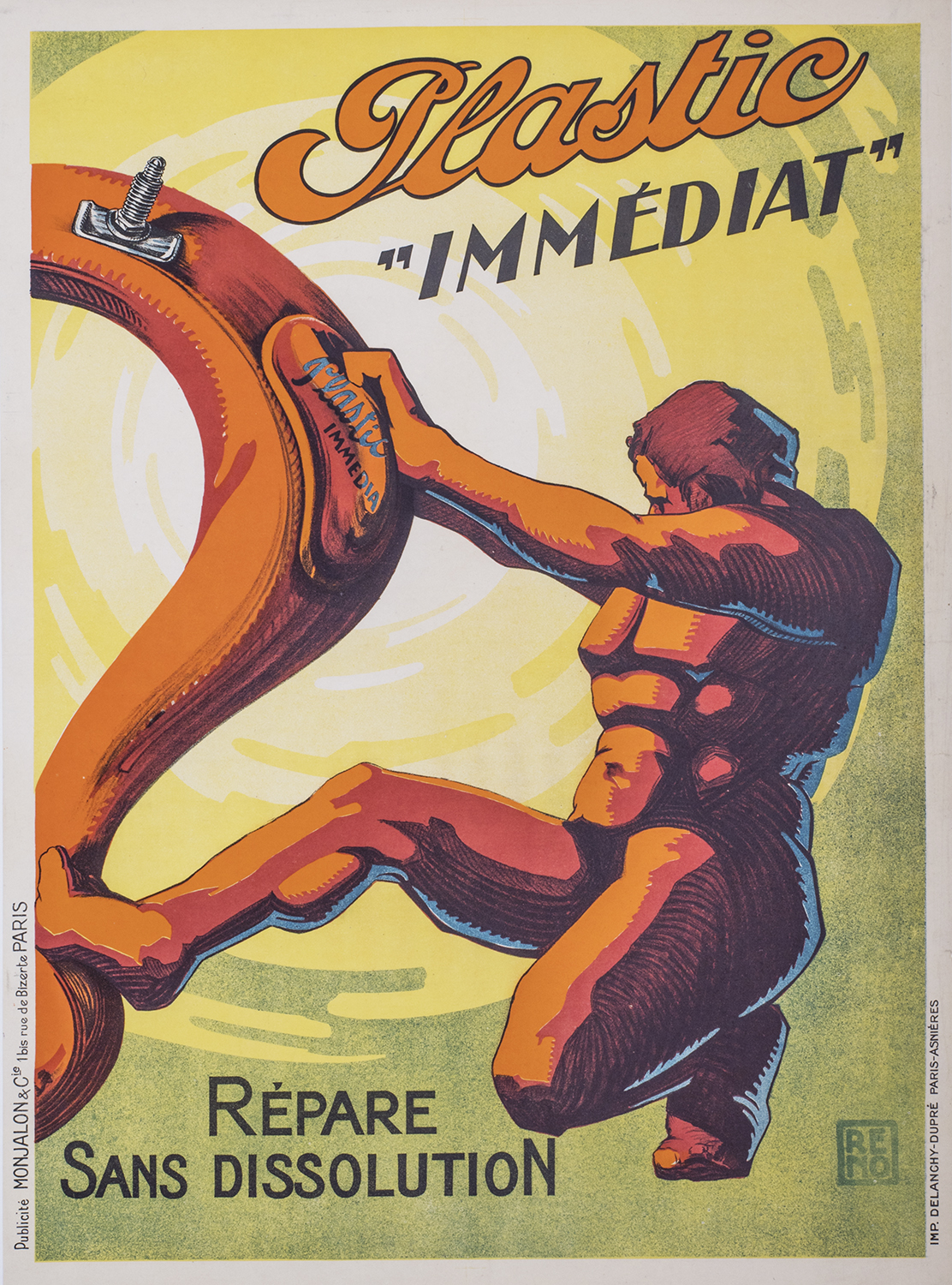 ANONYME Mammouth. Les vraies armes contre la vie chère Off-set couleur, deuxième moitié du XXe siècle. Inv. AF 2701 RENO Plastic « Immédiat ». Répare sans dissolution. Imprimerie Delanchy-Dupré Lithographie couleur, c. 1950. Cliché R. Carreras Inv. AF 5422